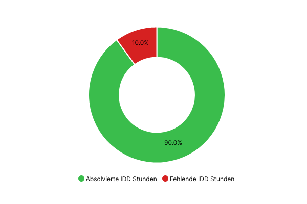 Mit dem ersten Blick hast Du den wichtigsten Faktor im Focus. Wie viele IDD-Stunden in % wurden bereits absolviert? Wie viele fehlen noch?