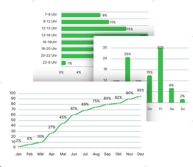 Mit diesen Auswertungen erhältst Du einen Überblick wann Deine Mitarbeiter sich intensiv mit dem Thema IDD auseinander setzten. Wie werden Eure Vorgaben umgesetzt? Entwickeln sich die IDD-Stunden bereits danach? Musst Du nachschärfen?